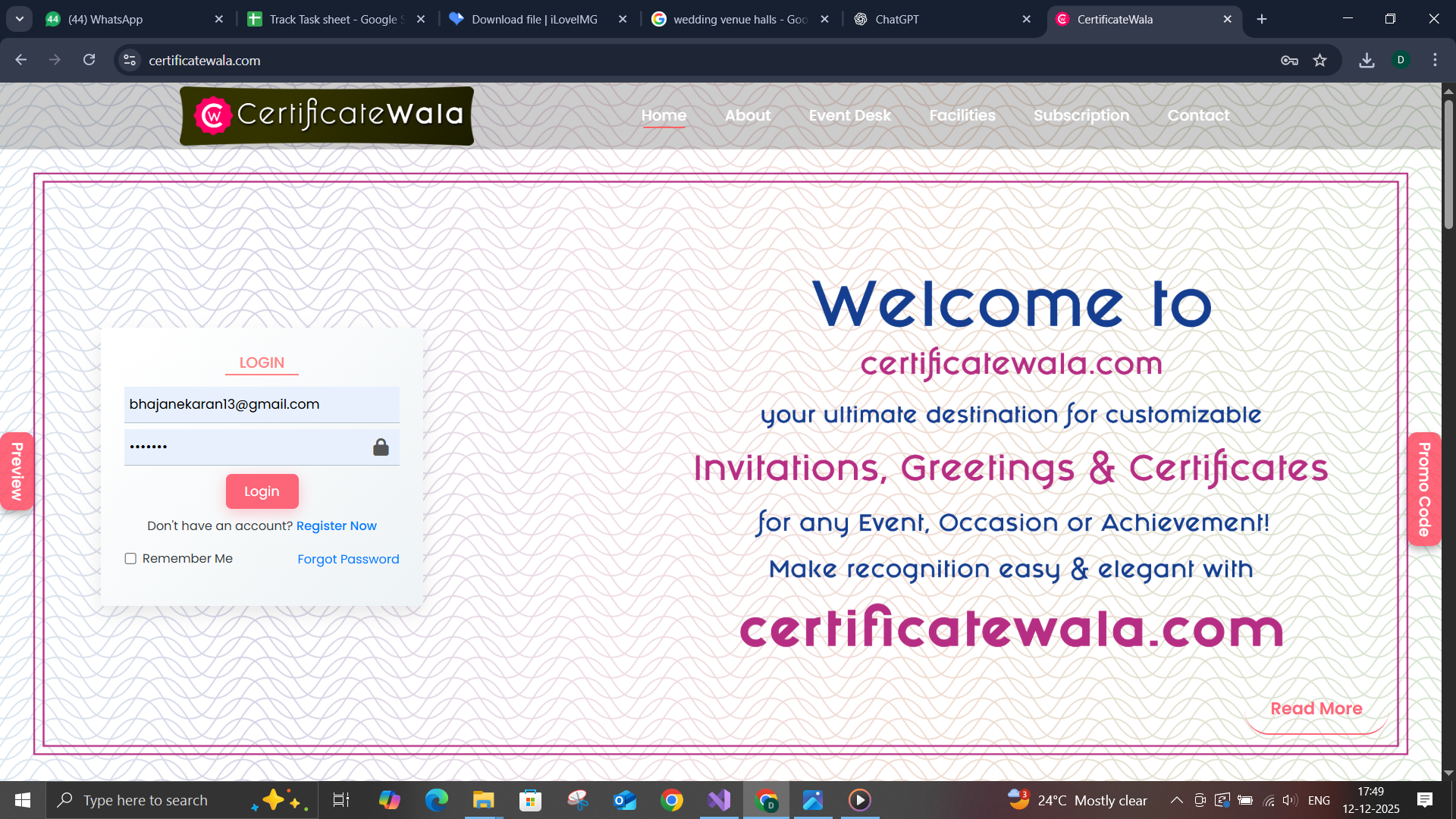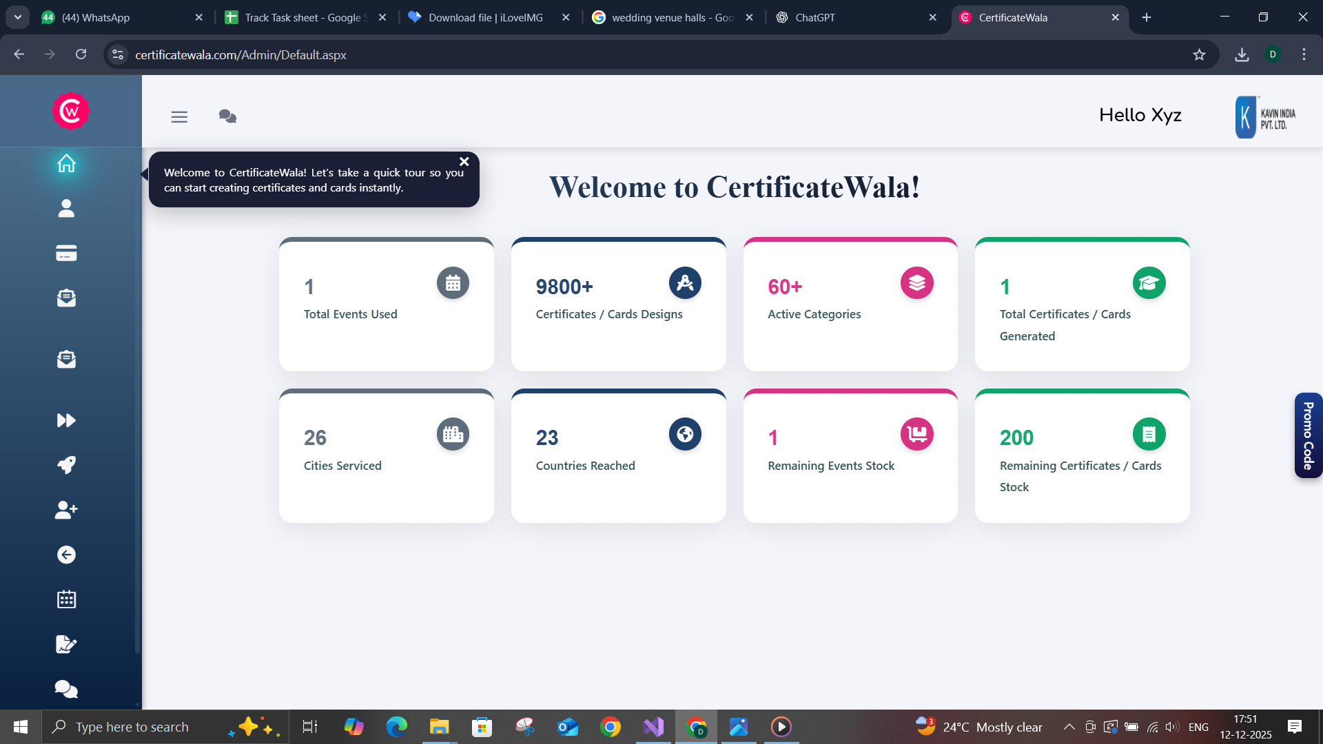 Certificatewala website offers a cloud-based certificate creation and issuance platform tailored for educational institutions, event coordinators, and training centers . Offers bulk issuance, ready-made templates, PDF generation.